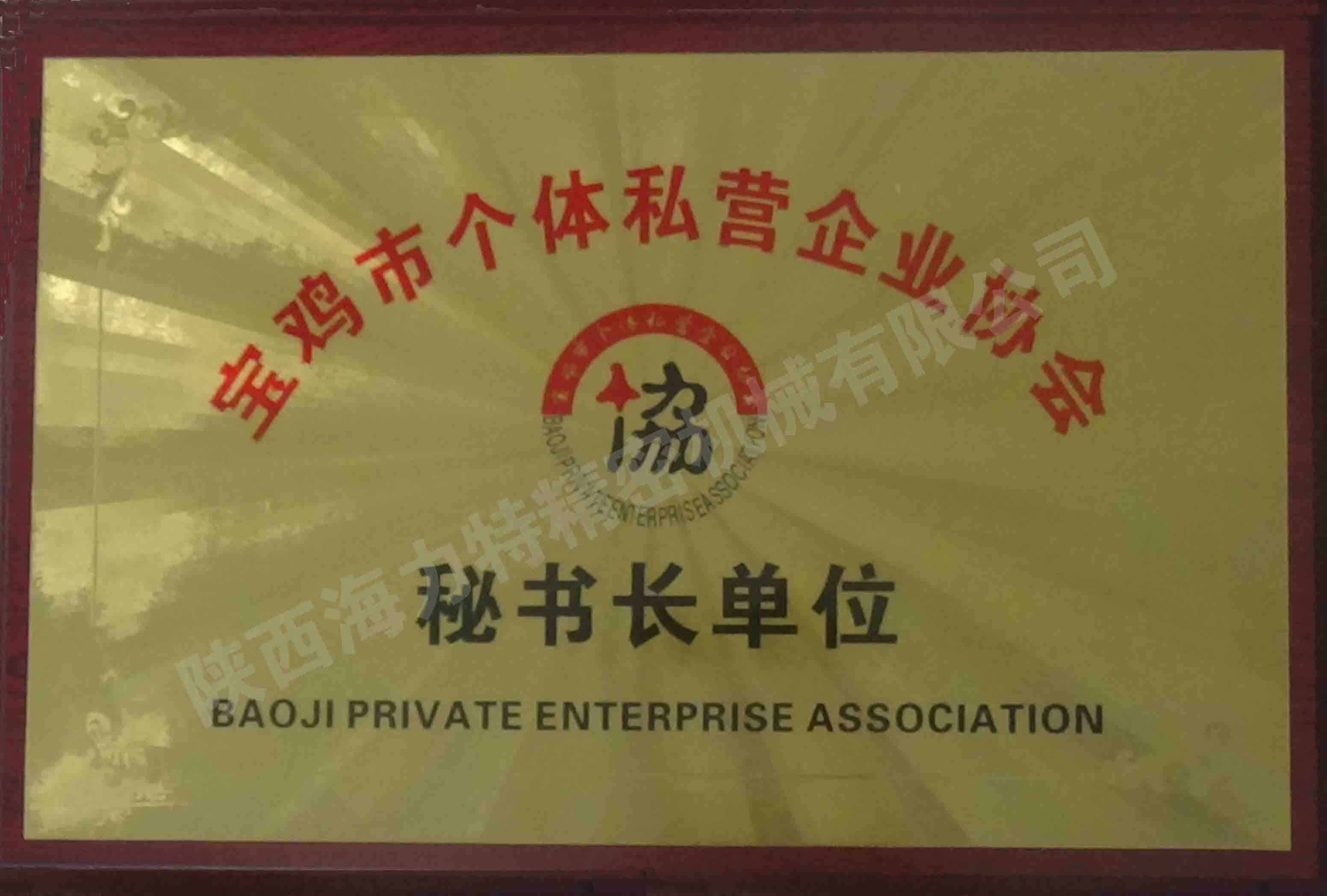 | 近日,陜西海力特精密機械有限公司被寶雞市個體私營企業協會授予“秘書長單位”稱號!