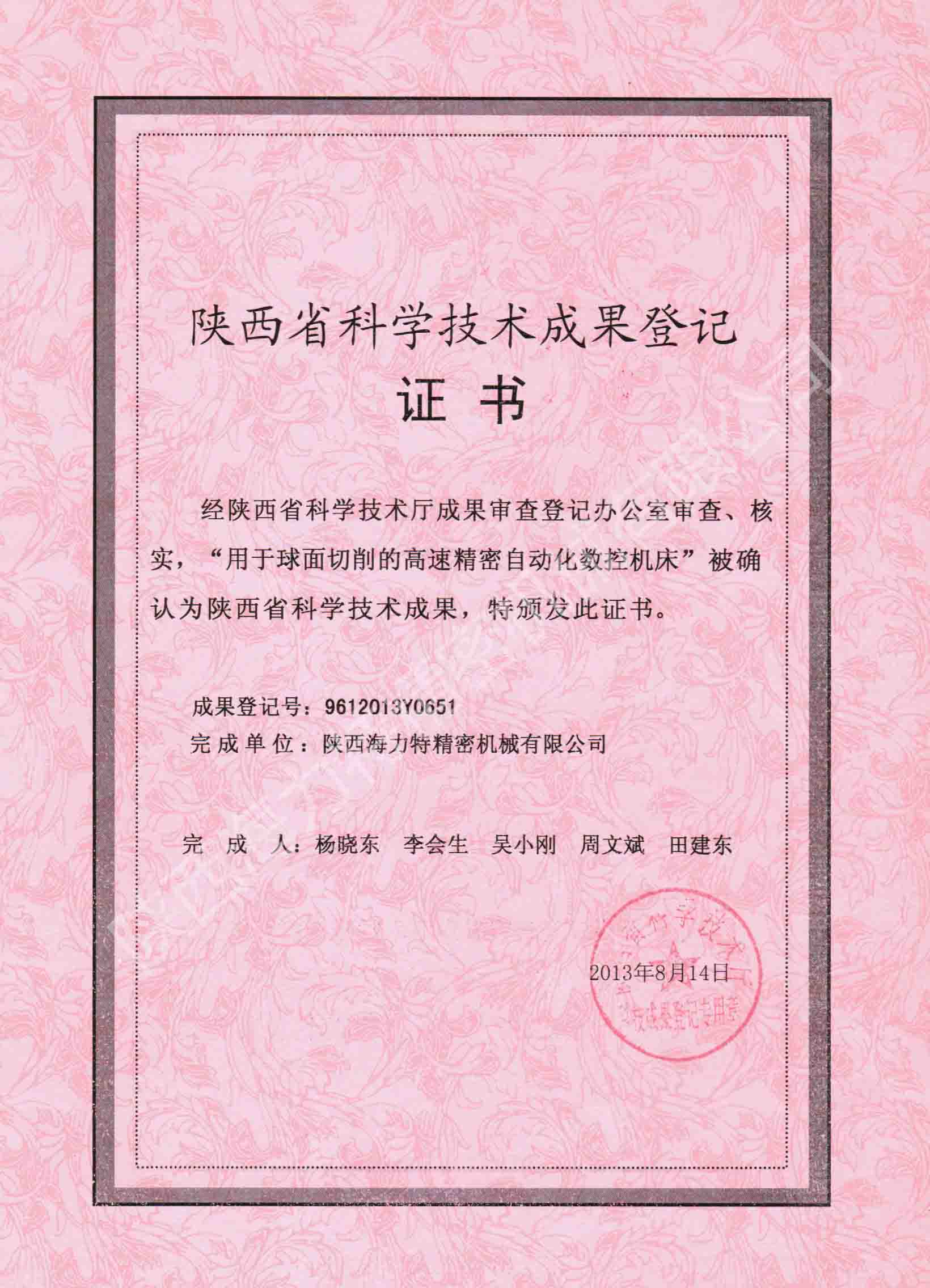 球車發明專利 陜西省科學技術成果 近日我公司自主研發的HNQ-50P數控球面在獲得國家發明專利授權又獲得陜西省科學技術廳省級成果登記一項。……