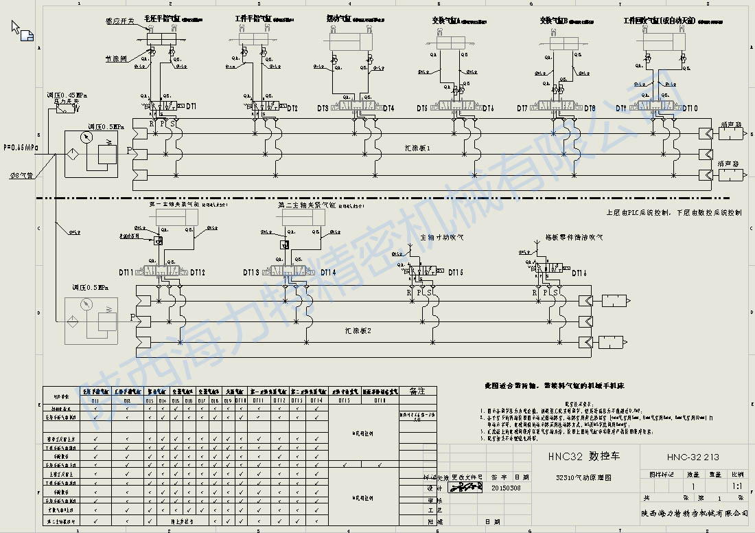 上圖是我司開發(fā)的HNC-32系列自動(dòng)控制,氣動(dòng)原理圖。公司采用較為先進(jìn)的設(shè)計(jì)理念,對(duì)每個(gè)動(dòng)作用邏輯圖驗(yàn)證,保證運(yùn)動(dòng)的合理可靠性。