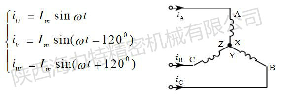 如下圖,就是最簡單的三相定子繞組AX、BY、CZ,它們在空 間按互差120度的規律對稱排列,并接成星型與三相電源U、V、W相聯,則三相定子繞組便通過三相對稱電流,當ωt=0時,iA=0,AX繞組中無電流;iB為負,BY繞組中的電流從Y流入B流 出;iC為正,CZ繞組中的電流從C流入Z流出;由右手螺旋定則可得合成磁場的方向如下圖所示,當t=1200時,iB=0,BY繞組中無電流;iA為正,AX繞組中的電流從A流入X流出;iC為負,CZ繞組中的電流從Z流入C流出;由右手螺旋定則可得合成磁場的方向如下圖所示。當t=2400時,iC=0,CZ繞組中無電流;iA為負,AX繞組中的電流從X流入A 流出;iB為正,BY繞組中的電流從B流入Y流出;由右手螺旋定則可得合成磁場的方向如下圖所示。可見,當定子繞組中的電流變化一個周期時,合成磁場也按電流的相序方向在空間旋轉一周。隨著定子繞組中的三相電流不斷地作周期性變化,產生的合成磁場也不斷地旋轉,因此稱為旋轉磁場。