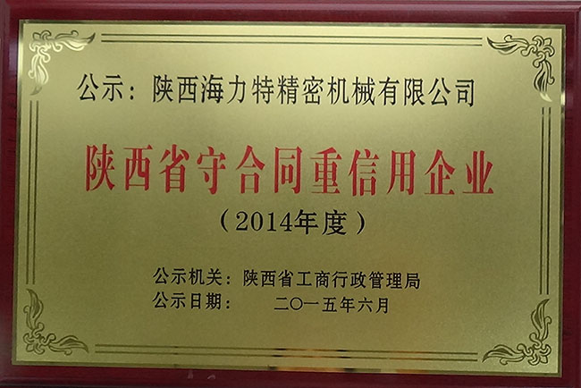 2015年6月18日陜西省工商行政管理局授予我公司——守合同重信用企業 證書